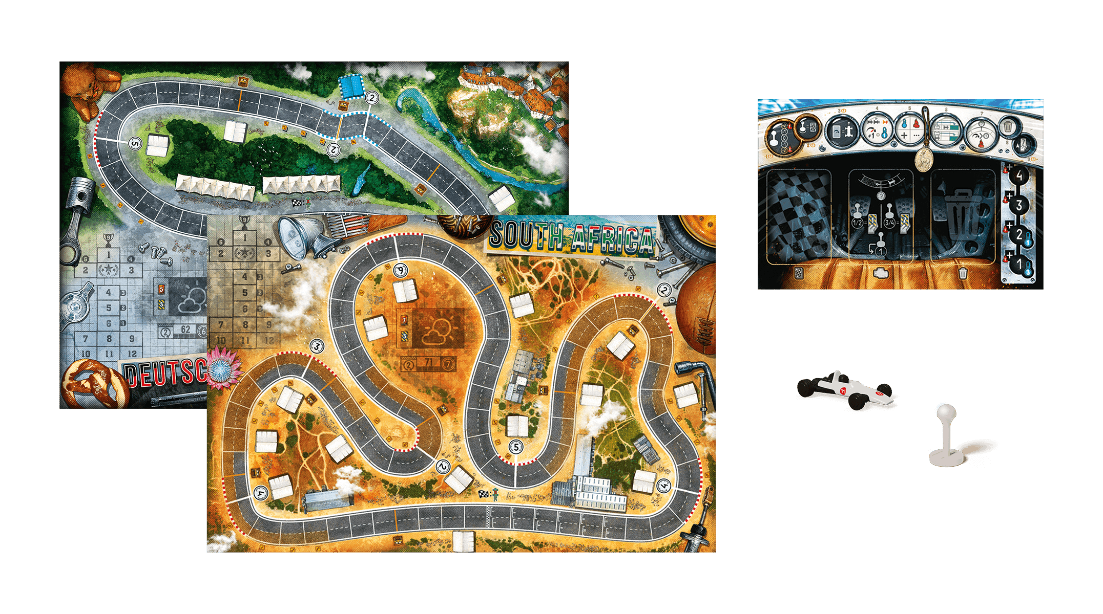 Zudem erweitert das Set euer Spielmaterial: Mit neuen Upgrades, Sponsorenkarten und zusätzlichen Komponenten kann jetzt sogar eine siebte Person ins Rennen einsteigen. Bereit für die Rennsaison 1966?