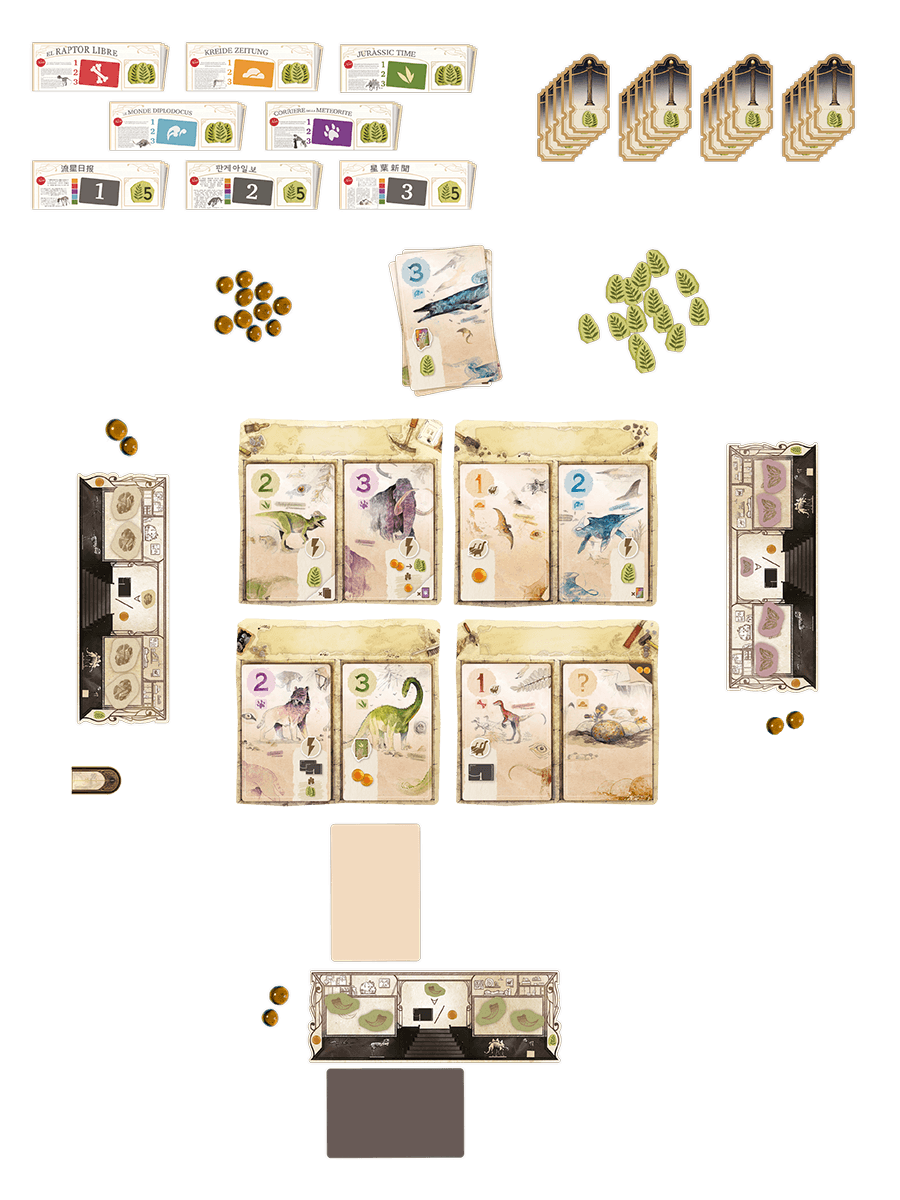 Ihr entscheidet, welche Funde ihr zuerst erforschen wollt, nutzt geschickt ihre Effekte und plant clever, wann ihr eure spektakulären Entdeckungen der Öffentlichkeit präsentiert. Timing ist alles – denn einmal ausgestellt, bringen euch eure Urzeitriesen zwar Punkte, verlieren aber ihre aktiven Boni.