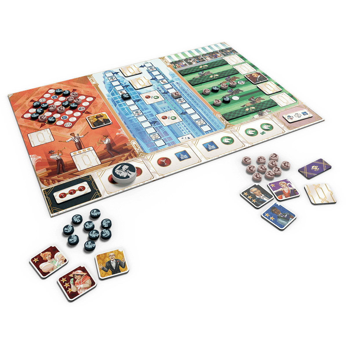 Im atmosphärischen Zwei-Personen-Spiel Gatsby verkörpert ihr Dorothy oder James, die im New York der 1920er-Jahre um die Gunst des sagenumwobenen Jay Gatsby buhlen. Im Kabarett, im Finanzzentrum und auf der Rennbahn sammelt ihr einflussreiche Persönlichkeiten, um Prestige für die Endwertung zu gewinnen – oder das Spiel durch clevere Sets direkt zu beenden!